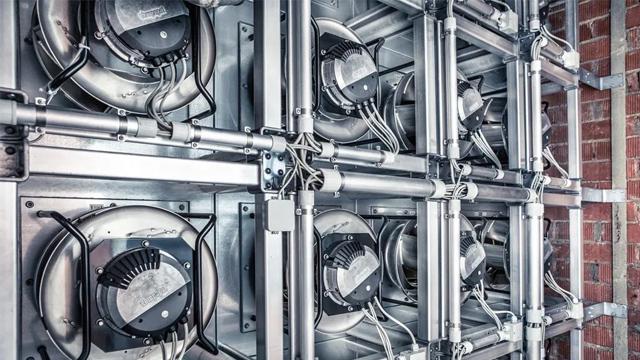 風(fēng)墻式空調(diào)機(jī)組是由幾臺EC離心風(fēng)機(jī)所組成,相比于單臺皮帶輪驅(qū)動離心風(fēng)機(jī),它的重量更加輕,并且設(shè)計緊湊,安裝起來更加方便快捷,占用的安裝空間也能夠大大減少。通過空調(diào)機(jī)組替代老舊皮帶輪風(fēng)機(jī)能夠大大提高節(jié)能效率,降低維護(hù)成本,并且還能夠擁有更高的性價比。