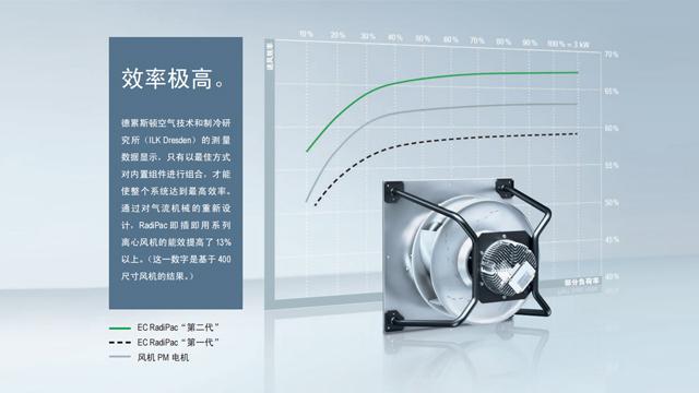 想要看工業用ahu風機是否高效,那就要以結果說話,在選購ahu離心風機時,不應當只考慮各個部件的效率,而是應當從整機角度觀察系統的最終表現。從節能來看,不是各部件的效率起決定性作用,而是它們相互作用的共同結果。這正是ahu風機的優勢所在。葉輪、電機和電子系統三部分完美匹配,可使總體效率高達60%以上。這一結果在很大程度上得益于外轉子設計的綠色科技EC電機。