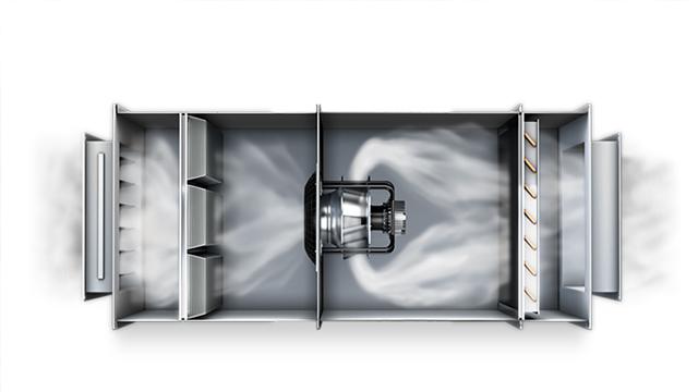 組合式空氣處理機組采用的EC離心風機能夠確保機組高效、連續的輸送空氣,緊湊的設計,具有更高的空氣性能,可以更好的利用空氣處理機組,達到更高的效率和運行的可靠。