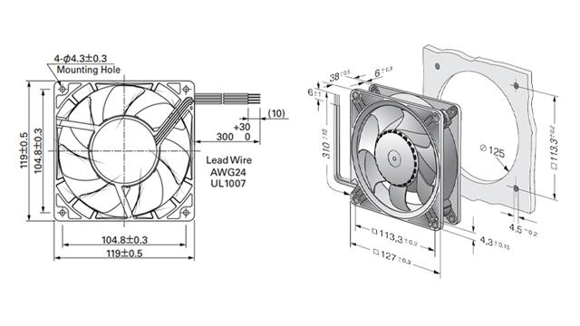 想要為產品選擇合適的直流散熱風扇,首先注意的,也是必需注意的,就是直流散熱風扇規格尺寸。散熱風扇的規格尺寸有一套統一的標準,只要依照此套標準就可以保證與產品或其它接口、支架之間的正常安裝。尺寸規格通常用一個4位數字來描述,例如:2510、4028、6015、8025、1238等。4位數字的前兩位25、40等代表散熱風扇正方形底面的邊長,單位為毫米;后兩位10、28、15等則代表柱體的高度,即散熱風扇的厚度,單位同為毫米。特別說明:92XX系列的風扇邊長為92mm,但通常稱作9cm;12XX或17XX系列的風扇并非12mm或17mm邊長,而是12cm或17cm;常用直流無刷風扇的邊長最小為25mm,而大于99mm的風扇通常舍去最低位,數值以cm為單位。